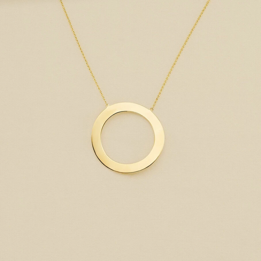 Sautoir en argent vĂ©ritable dorĂ© 750/1000 ornĂ© d’un anneau plat Ă©vidĂ©